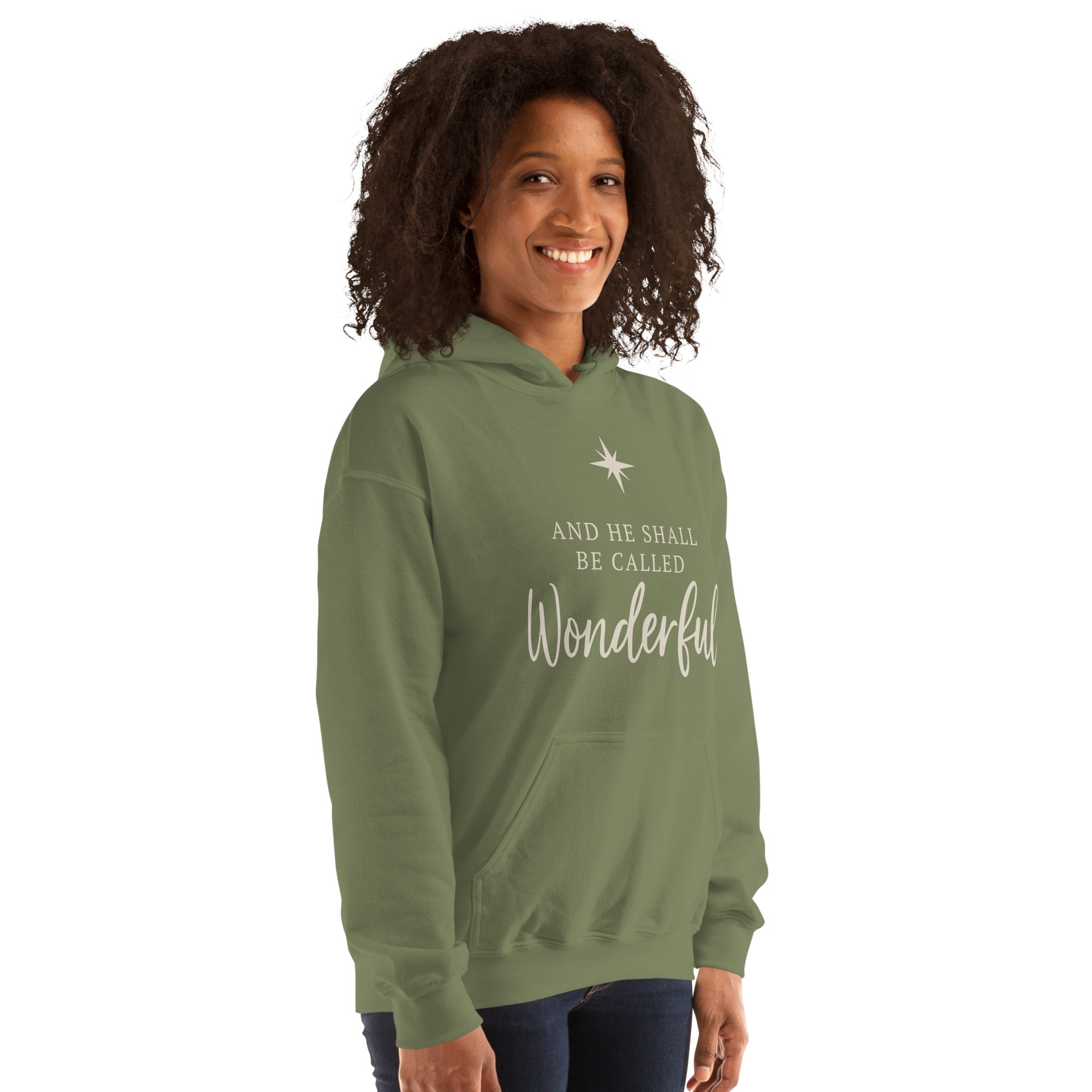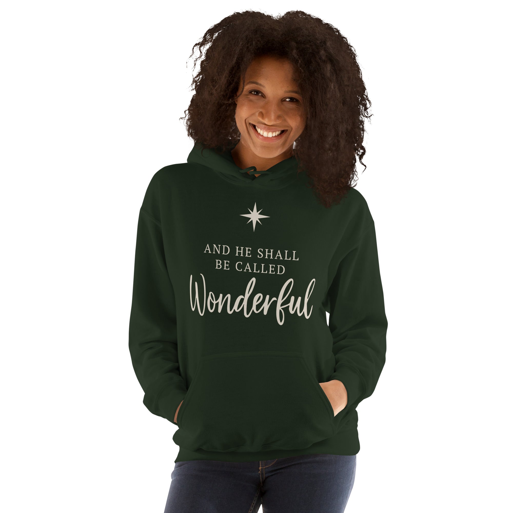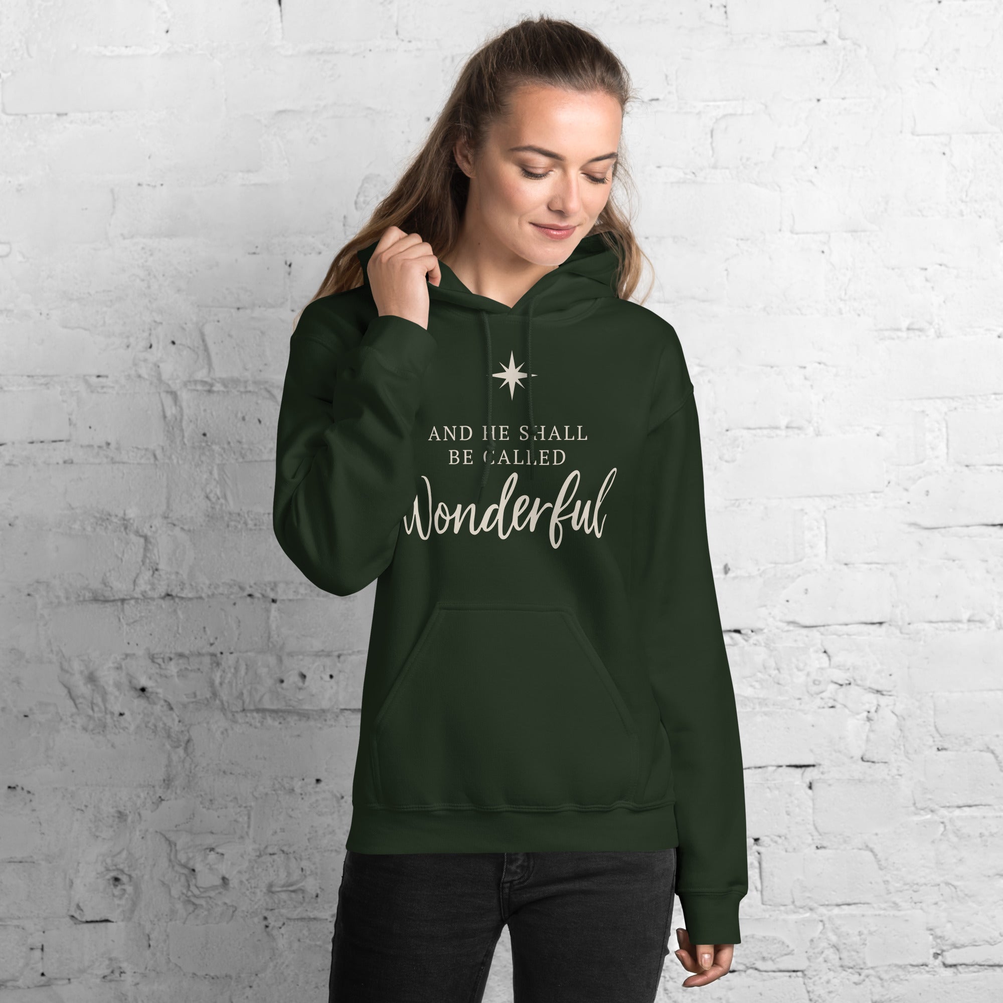 This sweatshirt features a message paraphrased from Isaiah 9 and made famous in Handel's Messiah. Who can forget the feeling of hearing a full choir sing "Wonderful!" "Counselor!", but the feeling of understanding in your own heart why we will always call him "Wonderful" is even better. Wrap yourself in the warmth of that reminder with this cozy, relaxed fit hoodie.